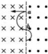 ![]() 参考答案:三种射线在匀强磁场中向上运动时,α射线带正电荷,可以判断它将向左偏转;β射线带负电荷,可以判断它将向右偏转;γ射线不带电,不偏转;由此可以判定a为α射线、b为γ射线、c为β射线.因此C选项正确,ABD都错误. 本题解析: 本题难度:一般 2、简答题 两平面荧光屏互相垂直放置,在两屏内分别取垂直于两屏交线的直线为x轴和y轴,交点O为原点,如图所示,在y>0,0<x<a的区域有垂直于纸面向里的匀强磁场,在y>0,x>a的区域有垂直于纸面向外的匀强磁场,两区域内的磁感应强度大小均为B。在O点有一处小孔,一束质量为m、带电量为q(q>0)的粒子沿x轴经小孔射入磁场,最后打在竖直和水平荧光屏上,使荧光屏发亮,入射粒子的速度可取从零到某一最大值之间的各种数值。已知速度最大的粒子在0<x<a的区域中运动的时间与在x>a的区域中运动的时间之比为2:5,在磁场中运动的总时间为 参考答案: 本题解析: 本题难度:一般 3、选择题 如图所示,a、b是两个匀强磁场边界上的两点,左边匀强磁场的磁感线垂直纸面向里,右边匀强磁场的磁感线垂直纸面向外,两边的磁感应强度大小相等.电荷量为2e的正离子以某一速度从a点垂直磁场边界向左射出,当它运动到b点时,击中并吸收了一个处于静止状态的电子,不计正离子和电子的重力且忽略正离子和电子间的相互作用,则它们在磁场中的运动轨迹是( ) |