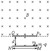 3、计算题 如图所示,MN、PQ是平行金属板,板长为L,两板间距离为d,PQ带正电,MN板带负电,在PQ板的上方有垂直纸面向里的匀强磁场。一个电荷量为q、质量为m的带负电粒子以速度v0从MN板边缘沿平行于板的方向射入两板间,结果粒子恰好从PQ板左边缘飞进磁场,然后又恰好从PQ板的右边缘飞进电场。不计粒子重力。试求: