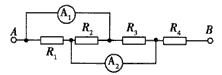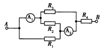 4、计算题  如图所示电路,R1=R2=4 Ω,R3=R4=2 Ω,UAB=6 V,求:
