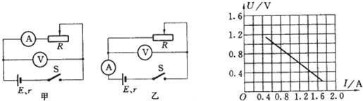 3、简答题 在测干电池的电动势和内电阻的实验中,图有甲、乙两个可供选择的电路,应选用______电路进行实验,实验中误差的来源是______,读数比实际值偏______,根据实验数据画出的U-I图线如图所示,则求得的电动势是______?V,内电阻是______Ω.