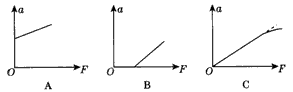 1、实验题 在实验中某人得不出当小车的质量一定时,加速度a与作用力F成正比的正确图线,而是得出如图所示图线。请分别说出得到A、B、C三种图线的原因。