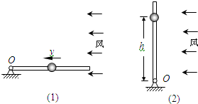 (2)保持风速不变,将杆沿竖直方向固定,如图(2)所示.将小球从距杆底端O点高h=1.8m处由静止释放,设小球下落过程中所受风力与杆处于水平方向时受到的风力大小相同.求小球下滑的加速度a和小球滑至O点经历的时间t.