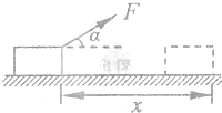 1、简答题 如图所示,用恒力F使一个质量为m的物体由静止开始沿水平地面移动的位移为x,力跟物体前进的方向的夹角为α,物体与地面间的动摩擦因数为μ,求: