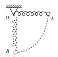 4、选择题 如图所示,一轻质弹簧固定于O点,另一端固定一小球,将小球从与悬点O在同一水平面且弹簧保持原长的A点无初速度释放,让其自由摆下,不计空气阻力,在小球摆向最低点B的过程中,下列说法正确的是( )