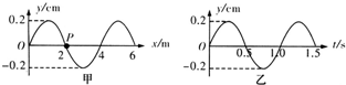 5、选择题 如图甲为一列简谐横波在t=0时的波的图象,图乙为该波中x=2m处质点P的振动图象,下列说法正确的是( )