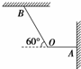 5、简答题 如图所示,一只小球用绳OA和OB拉住,OA水平,OB与水平方向成60°角,这时OB绳受的拉力为8N,求小球重力及OA绳拉力的大小.