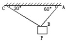 4、简答题 如图所示,用绳AB,BC吊一重物P,BA绳与水平方向夹角为60°,BC绳与水平方向夹角为30°,绳AB能承受的最大拉力为300牛,绳BC能承受的最大拉力为200牛.若要绳不断,则重物P的重力最大不超过多少?