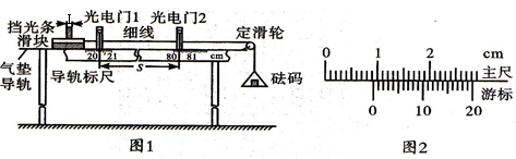 ②用游标卡尺测量挡光条的宽度L,结果如图2所示,由此读出L=?mm;