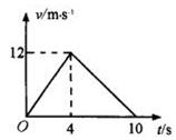 2、计算题 质量为3 kg的物体,在0 ~ 4 s内受水平力F的作用,在4 ~ 10 s内因受摩擦力作用而停止,其v-t图象如图所示。求: