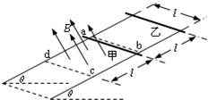 4、简答题 如图所示,两电阻不计的足够长光滑平行金属导轨与水平面夹角θ,导轨间距l,所在平面的正方形区域abcd内存在有界匀强磁场,磁感应强度为B,方向垂直斜面向上.将甲乙两电阻阻值相同、质量均为m的相同金属杆如图放置在导轨上,甲金属杆处在磁场的上边界,甲乙相距?l.静止释放两金属杆的同时,在甲金属杆上施加一个沿着导轨的外力F,使甲金属杆在运动过程中始终做沿导轨向下的匀加速直线运动,加速度大小gsinθ.