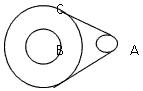 4、填空题 如图所示传送装置中,三个轮的半径分别为R,2R,4R;则图中A,B,C各点的线速度之比为____________;角速度之比为_____________;加速度之比为_____________。