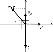 物快B向左缓慢移动一小段距离,θ变大,mAgcosθ变小,mAgsinθ变大,所以F变小,