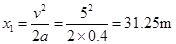 5、计算题  (8分)汽车刹车进站,刹车前的速度为5m/s,刹车过程获得的加速度大小为0.4 .求: