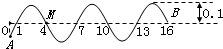时间t=1.2s=T,则质点M通过的路程为S=4A,A=2cm,则得S=8cm.