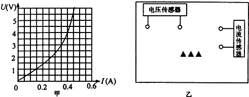 (1)实验室提供的器材有:电流传感器、电压传感器、滑动变阻器A(阻值范围0~10Ω)、滑动变阻器B(阻值范围0~100Ω)、电动势为6V的电源(不计内阻)、小灯泡、电键、导线若干.该同学做实验时,滑动变阻器选用的是______(选填“A”或“B”);请在图乙的方框中画出该实验的电路图.