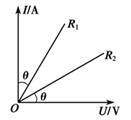 5、选择题 两电阻R1、R2的电流I随电压U变化的关系图线如图所示,其中R1的图线与纵轴的夹角和R2的图线与横轴的夹角都是θ=30°.若将R1、R2串联起来接入电路中,则通电后R1、R2消耗的电功率之比P1∶P2等于( )