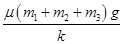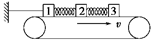 5、选择题 如图所示,在水平传送带上有三个质量分别为m1、m2、m3的木块1、2、3,1和2及2和3间分别用原长为L,劲度系数为k的轻弹簧连接起来,木块与传送带间的动摩擦因数均为 μ,现用水平细绳将木块1固定在左边的墙上,传送带按图示方向匀速运动,当三个木块达到平衡后,1、3两木块之间的距离是( )