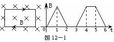 3、选择题 一矩形线圈位于一随时间t变化的匀强磁场内,磁场方向垂直线圈所在的平面(纸面)向里,如图12-1所示.磁感应强度B随时间t变化的规律如图12-1所示.以I表示线圈中的感应电流,以图12-1中线圈上箭头所示方向的电流为正,则以下的I-t图12-2中正确的是