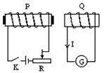 C.闭合电键K后,把P中的铁芯从左边抽出