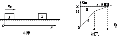 3、选择题 (10分)如图甲所示,光滑水平面上有A、B两物块,已知A物块的质量mA=1kg.初始时刻B静止,A以一定的初速度向右运动,之后与B发生碰撞并一起运动,它们的位移-时间图象如图乙所示(规定向右为位移的正方向),
