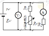 5、选择题 在如图所示的电路中,E为内阻不可忽略的电源,R 1、R2为定值电阻,R为光敏电阻.无光照射时,外电路的总电阻比电源的内阻小;当有光照射在光敏电阻上,且照射光的强度逐渐增大时,下列说法正确的是[? ]