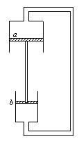 1、选择题 如图所示,两个直立气缸由管道相通。具有一定质量的活塞a、b用钢性杆固连,可在气缸内无摩擦地移动。缸内及管中封有一定质量的气体。整个系统处于平衡状态。大气压强不变。现令缸内气体的温度缓慢升高一点,则系统再次达到平衡状态时(?)
