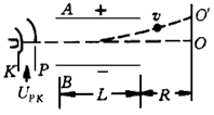 ![]() 参考答案:运动轨迹凹的一侧为加速度的方向,也即粒子受力的方向,所以粒子受的电场力向右,与电场线方向相同,故带正电. 本题解析: 本题难度:一般 4、简答题 从阴极K发射的电子经电势差U0=4500V的阳极加速后,沿平行于板面的方向从中央射入两块长L1=10cm,间距d=4cm的平行金属板AB之后,在离金属板边缘L2=75cm处放置一个直径D=20cm的带有记录纸的圆筒(如图1所示),整个装置放在真空内,电子发射的初速度不计.已知电子质量m=0.9×10-30kg,电子电量e=1.6×10-19C,不考虑相对论效应. 参考答案:(1)由eU0=12mv20得电子入射速度 本题解析: 本题难度:简单 5、选择题 如图,实线表示一匀强电场的电场线,一个带正电荷的粒子射入该电场,虚线是它的运动轨迹,a、b是轨迹上的两点,不计重力,则( ) |