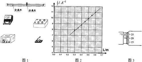 (3)该小组测得电流与金属丝接入长度关系的数据,并据此给出了图2的关系图线,其斜率为______A-1?m-1(保留三位有效数字);图线纵轴截距与电源电动势的乘积代表了______的电阻之和.