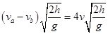 4、填空题 如图所示,一导弹离地面高度为h水平飞行,某一时刻,导弹的速度为v,突然爆炸成质量相同的A、B两块,A、B同时落地到地面,两落地点相距