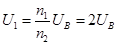 ,A错误;因为是相同的两只灯泡,所以两端的电压比等于电流比,B正确;因为B灯电压为副线圈输出电压,则原线圈电压是