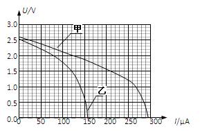 (ⅰ)实验一:用一定强度的光照射硅光电池,调节滑动变阻器,通过测量和计算得到该电池的U-I曲线如图甲。由此可知电池的内阻随电流的增大而______(填:增大,减小,不变),短路电流为