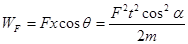 5、选择题 如图所示,质量为M的物体放在光滑水平地面上,在受到与水平方向成α角的恒力F作用下,从静止开始运动,在时间t内F对物体所做的功为WF,下列做法中(设物体仍可在水平面上运动),可使恒力所做的功减小为