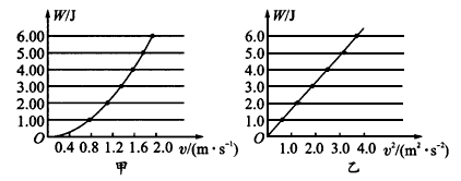 以W为纵坐标,v为横坐标作出W-v曲线(如图甲).以W为纵坐标,v2为横坐标,作出W-v2曲线(如图 乙).