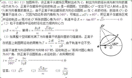 点评:中等难度。关键要画出轨迹,根据圆心角求时间,由几何知识求半径是常用方法。