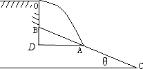 1、简答题  第六届亚冬会在长春刚刚落下帷幕,中国体育代表团获得了可喜的好成绩.如下图所示,高台滑雪运动员从跳台边缘的O点以水平方向的速度跳出.他离开跳台时的速度为v0=8.0m/s,运动员连同滑雪板的质量为m=50kg,他落到了斜坡上的A点,斜坡与水平面的夹角为37°,O点位于斜坡上的B点的正上方,OB之间的高度为h=3.2m..忽略空气阻力的影响,重力加速度g=10m/s2.求运动员在空中飞行的时间t以及运动员落在斜坡上的速度大小v.(sin37°=0.6)