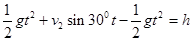 3、选择题  如图所示,在地面上方高度h处将A球以初速度v1水平抛出,同时在A球正下方地面处将B球以与地面成30°角的初速度v2斜向上抛出,两球在空中相遇,不计空气阻力,则(?)