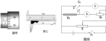 1、简答题 某同学在学完“测量金属的电阻率”实验后,找到一个柱状导体材料,想利用实验测量其电阻率,利用游标卡尺和螺旋测微器分别测量该导体的长度和粗细