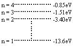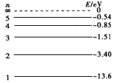 F.卢瑟福首先发现了天然放射现象,说明原子核还有复杂的结构 4、计算题 如图所示,氢原子从n>2的某一能级跃迁到n=2的能级,辐射出能量为2.55 eV的光子。问最少要给基态的氢原子提供多少电子伏特的能量,才能使它辐射上述能量的光子?请在图中画出获得该能量后的氢原子可能的辐射跃迁图。 5、选择题 氢原子的部分能级示意图如图所示,大量电子从n=4跃迁到n=2的能级时,发出可见光a,从n=3跃迁到n=2的能级时,发出可见光b,下列说法正确的是: |