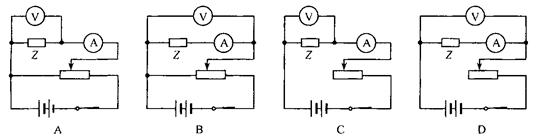 F.直流稳压电源,输出电压12V,额定电流1A G.滑动变阻器,0~50Ω,0.5A H.电键一只,导线若干 ① 欧姆表测得的电阻值约为?Ω; ② 电流表应该选择?,电压表应该选择?,电源应该选择?,(填字母代号); ③ 请在下列实验电路图中选择合适的电路图(?)  参考答案:①1000Ω(2分);②B;D;F(每空2分);③B(3分)。 本题解析:①通过观察万用电表的表盘及指针的位置,可知所测电阻的大小为100Ω×10=1000Ω; 本题难度:一般 2、填空题  一只小灯泡,标有“3V、0.6W”字样.现用右下图给出的器材测量该小灯泡正常发光时的电阻R1.(滑动变阻器最大阻值为10Ω;电源电动势为12V,内阻不计;电流表内阻为1Ω,电压表的内阻为10kΩ). 参考答案:(1)因小灯泡标有“3V、0.6W”字样,其电阻R=U2?P=15Ω,因R?VR<<RR?A,电流表应选外接法,根据闭合电路欧姆定律估算电路R?min=EI?A=120.2Ω,显然滑动变阻器不能用限流式应用分压式接法. 本题解析: 本题难度:一般 3、实验题  影响物质材料电阻率的因素很多,一般金属材料的电阻率随温度的升高而增大,而半导体材料的电阻率则与之相反,随温度的升高而减少。某课题研究组需要研究某种导电材料的导电规律,他们用该种导电材料制作成电阻较小的线状元件Z做实验,测量元件Z中的电流随两端电压从零逐渐增大过程中的变化规律。