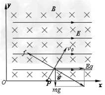 参考答案:解:(1)如图粒子在复合场中做匀速直线运动,设速度v0与x轴夹角为θ,依题意得:粒子合力为零 ①