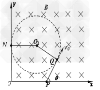 较小),但速度大小均相同,如图所示,求所有粒子经过OB时的区域长度。