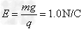 重力mg=2.0×10-6 N,电场力F电=Eq=2