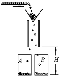 3、简答题 如图是静电分选器的原理示意图,将磷酸盐和石英的混合颗粒由传送带送至两个竖直的带电平行板上方,颗粒经漏斗从电场区域中央处开始下落.经分选后的颗粒分别装入A.B桶中.混合颗粒离开漏斗进入电场时磷酸盐颗粒带正电,石英颗粒带负电,所有颗粒所带的电量与质量之比均为10–5C/kg.若已知两板间的距离为10cm,颗粒在电场中下落的竖直高度为50cm.设颗粒进入电场时的初速度为零,颗粒间的相互作用力不计.如果要求两种颗粒离开两极板间的电场区域时不接触到极板而且有最大的偏转量.