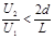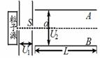 5、选择题 如右图所示,一个重力不计的带电粒子,从粒子源飘入(初速度很小,可忽略不计)电压为U1的加速电场,经加速后从小孔S沿平行金属板A、B的中心线射入,A、B板长为L,相距为d,电压为U2。则带电粒子能从A、B板间飞出,应该满足的条件是(? )