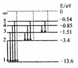 3、选择题 用光照射处在基态的氢原子,有可能使氢原子电离。下列说法中正确的是(?) 4、选择题 氢原子的能级图如图所示,一群处于n=4能级的氢原子向较低能级跃迁,能产生?种不同频率的光子,其中频率最大的光子是从n=4的能级向n=?的能级跃迁所产生的。 5、填空题 原子从一个能级跃迁到一个较低的能级时,有可能不发射光子,例如在某种条件下,铬原子的n=2能级上的电子跃迁到n=1能级上时并不发射光子,而是将相应的能量转交给n=4能级上的电子,使之能脱离原子,这一现象叫做俄歇效应,以这种方式脱离了原子的电子叫做俄歇电子,已知铬原子的能级公式可简化表示为En= |