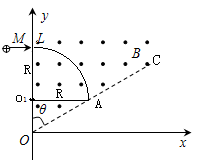 本题解析:(1)粒子a竖直向下穿过OC,在磁场中轨迹圆心如图为O1,OO1=Rcotθ,OO1=L-R,得