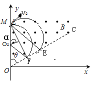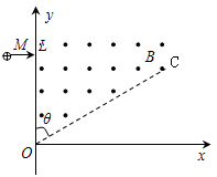 3、计算题 如图所示,虚线OC与y轴的夹角θ=60°,在此角范围内有一方向垂直于xOy平面向外、磁感应强度大小为B的匀强磁场。一质量为m、电荷量为q的带正电的粒子a(不计重力)从y轴的点M(0,L)沿x 轴的正方向射入磁场中。求: