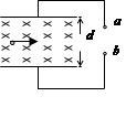 5、填空题 如图所示,是等离子体发电机的示意图,磁感应强度为B,两板间距离为d,要使输出电压为U,则等离子的速度V为_______,a是电源的_____极。