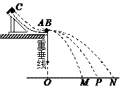4、实验题 读出下列仪器测量的读数。? 5、计算题 在利用碰撞做“验证动量守恒定律”实验中,实验装置如图所示,一起按要求安装好后开始实验。先是不放被碰小球,重复实验若干次;然后把被碰小球净值放在斜槽末端的水平部分的前端边缘处,又重复实验若干次,在白纸上记录下重锤位置和各次实验时小球落点的平均位置,一次为O、M、P、N,设入射小球和被碰小球的质量分别为m1、m2,且m1=2m2,则 |