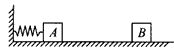 4、计算题 左端固定在墙壁上的轻弹簧将一质量为M的小物块A弹出,物块A离开弹簧后与一质量为m的静止在水平地面上的小物块B发生弹性正碰,如图所示,一切摩擦均不计,为使二者至少能发生两次碰撞,则m与M的比值应满足什么条件?